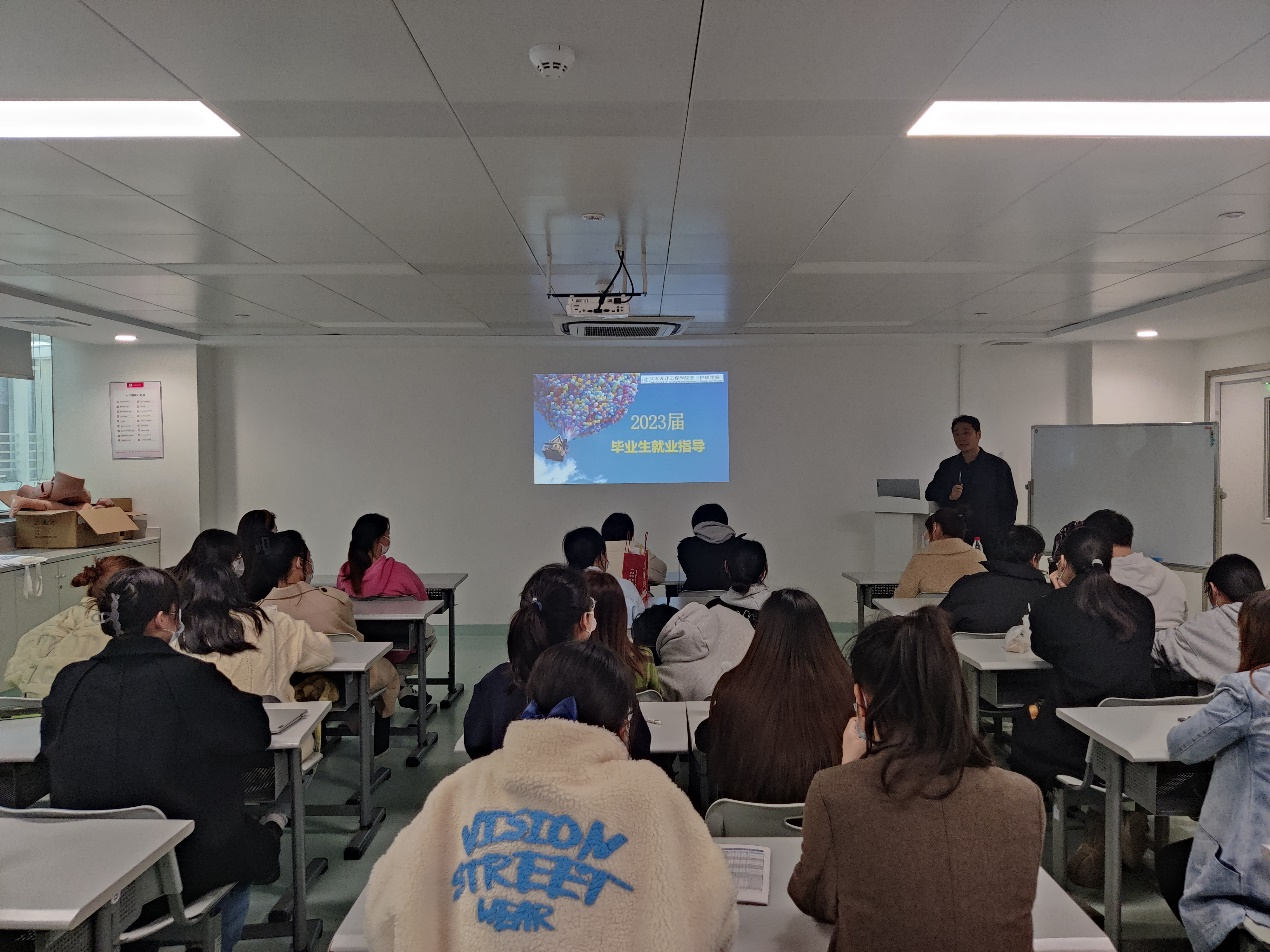 随后,辅导员孟祥宇老师结合就业形势、应对措施、就业体系、求职材料(简历的撰写技巧)以及就业方面的几点建议,给同学们做了就业工作动员。