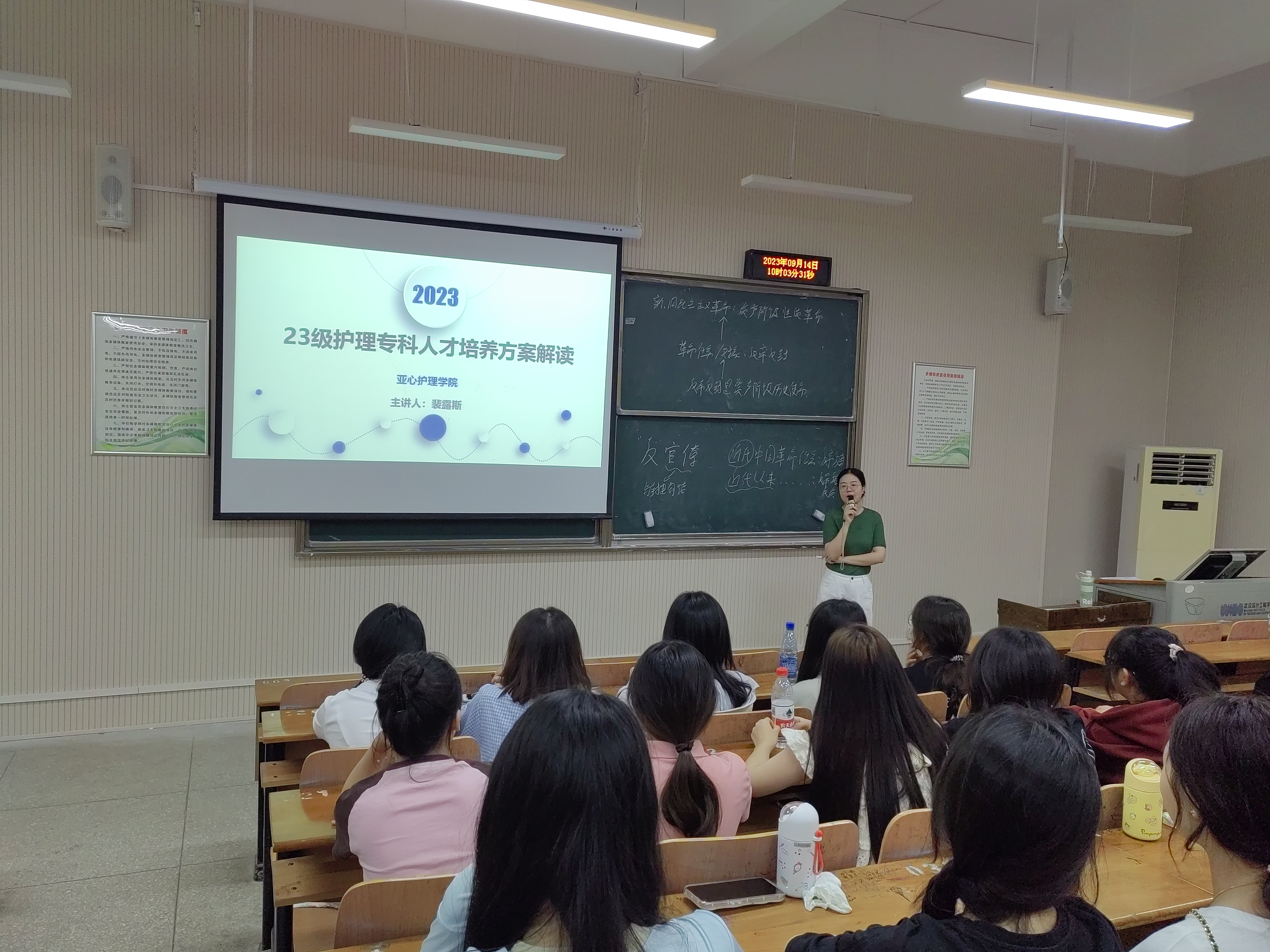 院长康爱梅为2023级新生作了“校情院情教育”专题讲座,从历史沿革,专业特色、突出成绩等方面为同学们详细介绍了学校和学院的基本情况和发展前景。她鼓励同学们牢记院训“知行合一、仁爱至善”,不虚度大学时光,祝福每一位新同学都能笃学敏行,在人生的舞台上播种理想,扬帆起航!