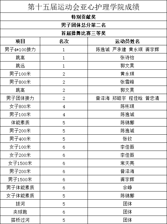 yl6809永利官网集团第十五届运动会11月24日至25日在学校运动场举行,我院教工、学生踊跃报名参赛,运动健儿们信心满满,全力以赴,最终以优异的表现和良好的风貌在本届运动会中获得“特别贡献奖”、男子团体总分第二名和首届团体健身操舞比赛三等奖,取得历史性突破,以振奋人心的成绩圆满收官!
