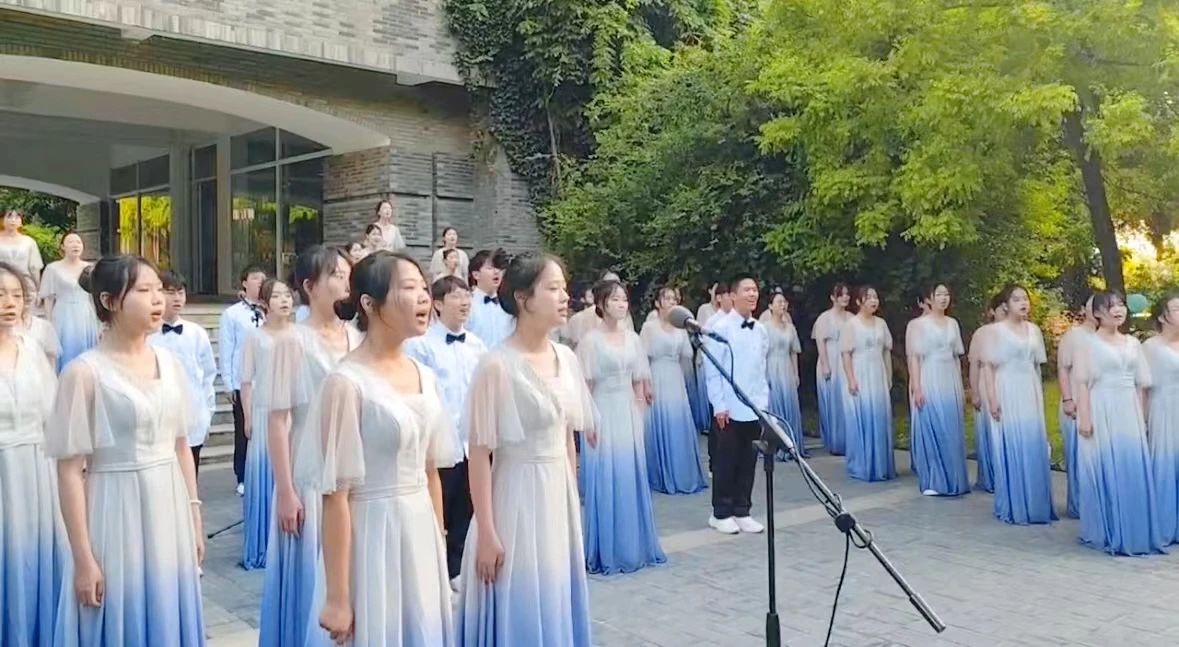 同学们合唱的歌曲《如愿》以诗意的语言描绘了在世代中国人的奋斗与传承中,祖国日益强大之景。通过将爱国情怀和亲情紧密联系,在歌声中寄托了同学们对未来的美好期许和对家国情怀的深刻思考。