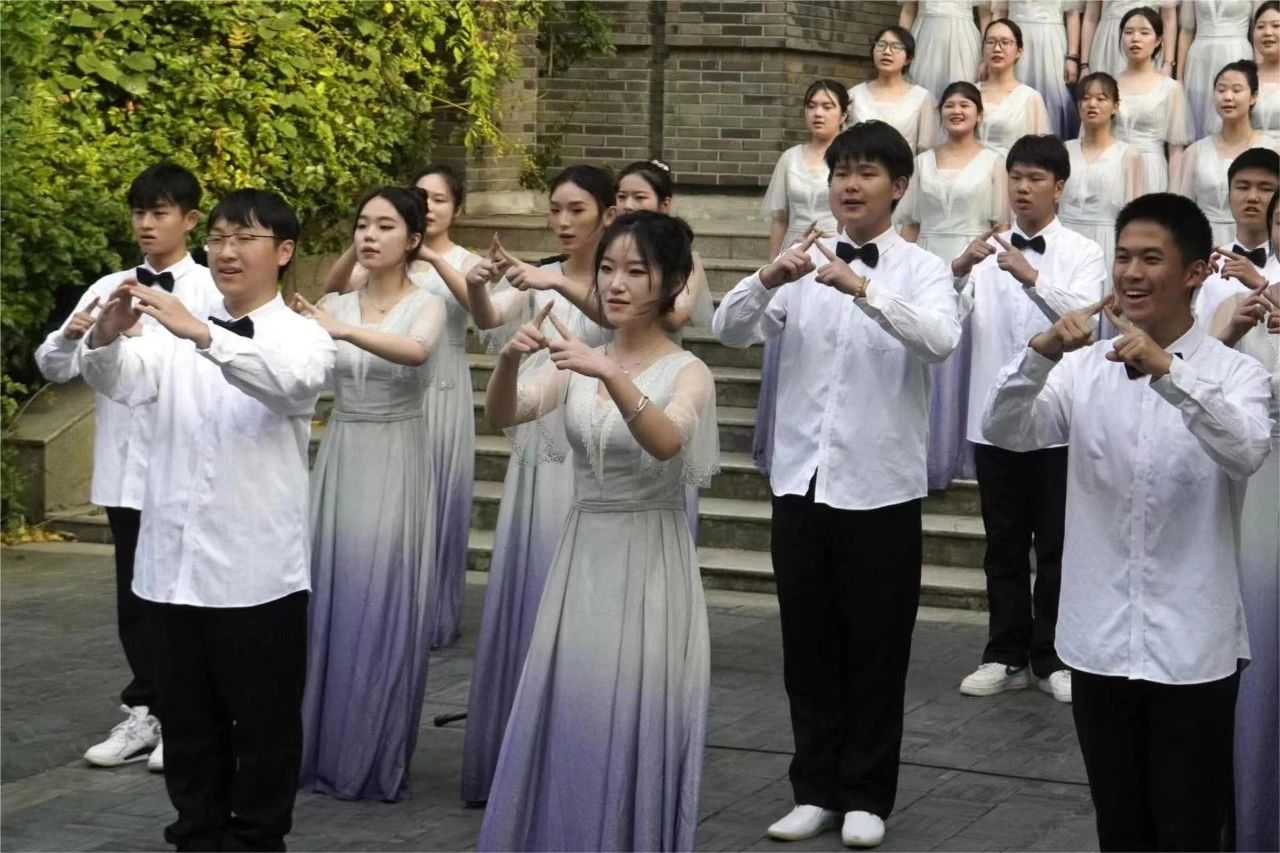此外,在合唱的同时,同学们还巧妙地运用了一些舞台效果,如变换队形、加入手语动作等等,使得整个表演更加生动有趣。他们的歌声和动作相互呼应,完美地融合在一起,为观众带来了一场视听盛宴。同学们的合唱表演充满了激情和感染力,他们的歌声在校园里回荡,感染着每一个在场的人。他们的表演不仅展现了他们对音乐的喜欢,更传递了他们对青春的热爱和对未来的憧憬。