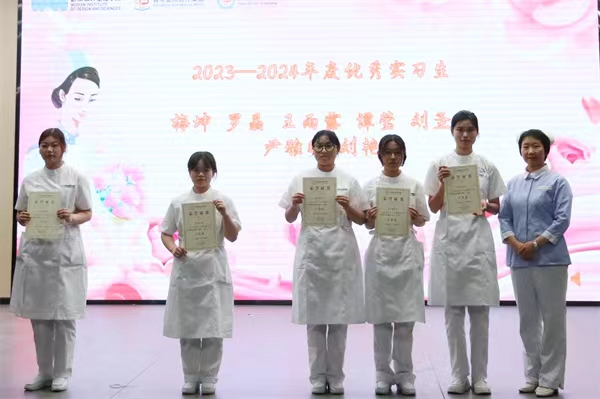 在晚会进行中,出席活动的领导嘉宾分别为yl6809永利集团2022—2023学年度先进个人,2023—2024年度学校奖学金获得者、优秀实习生、优秀实习生小组长,2024年护理技能操作大赛和湖北省第四届大学生医学虚拟仿真实验技能大赛获奖者颁奖。
