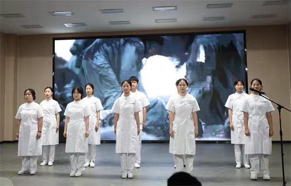 晚会上,慷慨激昂的诗词朗诵、情绪饱满的心理话剧、宛转悠扬的动听歌声……学子们用精彩纷呈的文艺汇演展现出对护理事业的热爱和执着,彰显出护理学子积极向上、朝气蓬勃的精神风貌,每一个节目都传递着医者仁心的初心使命和崇高精神,让现场观众深受感动。
