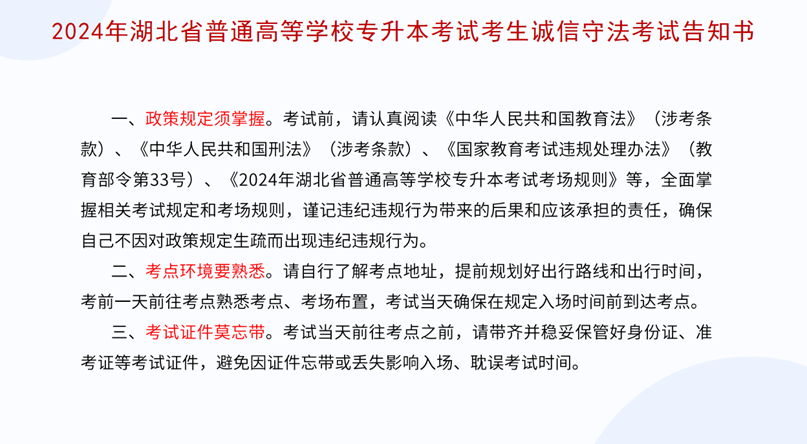 会上,辅导员王勇进老师宣读了2024年湖北省普通高等学校专升本考试考生诚信守法考试告知书暨考试注意事项,对考试考场规则、国家教育考试违规处理办法(节选)进行了解读。要求专升本考生要认识到本次考试的严肃性和重要性,把握机会,认真备考,诚信应考。