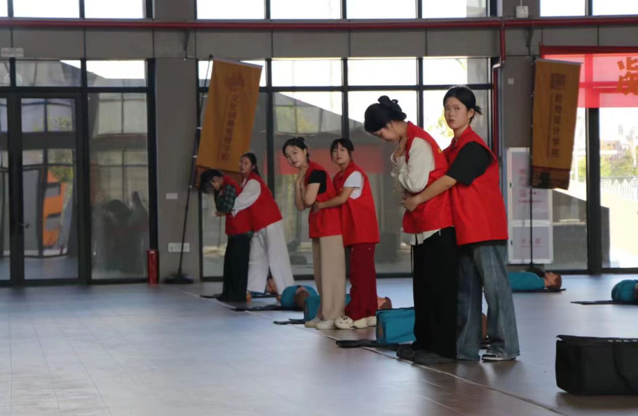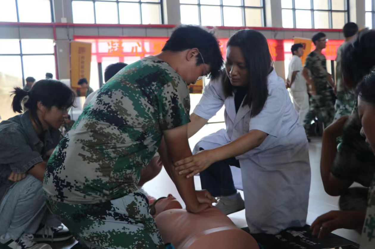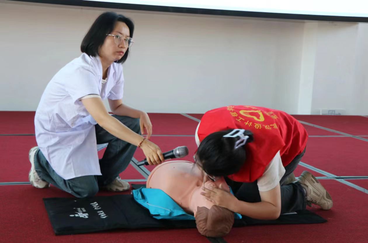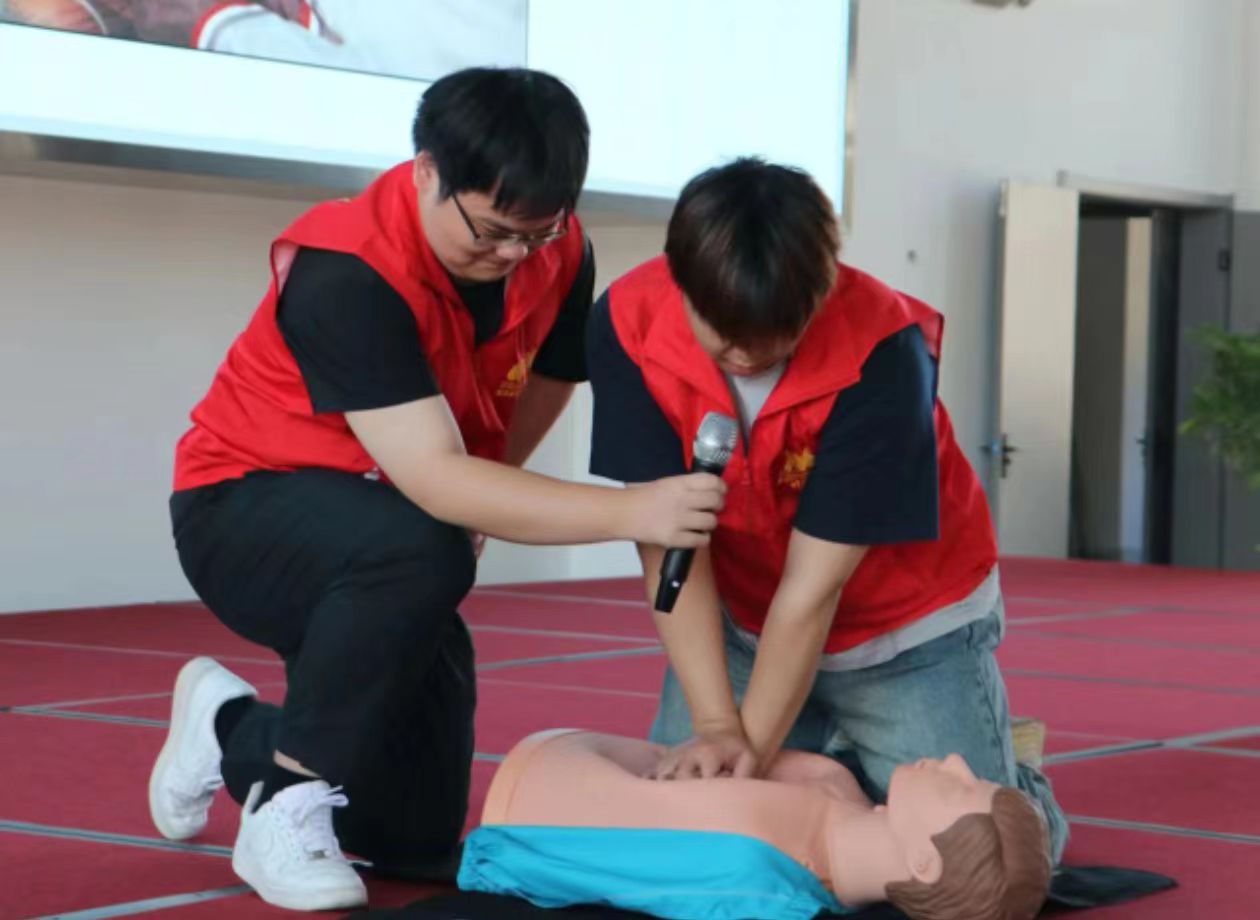 在理论学习之后,同学们分组进行了实操模拟训练。老师们和志愿者们对大家的操作进行了细致的现场指导,确保每位同学都能掌握正确的操作方法、力度和节奏。