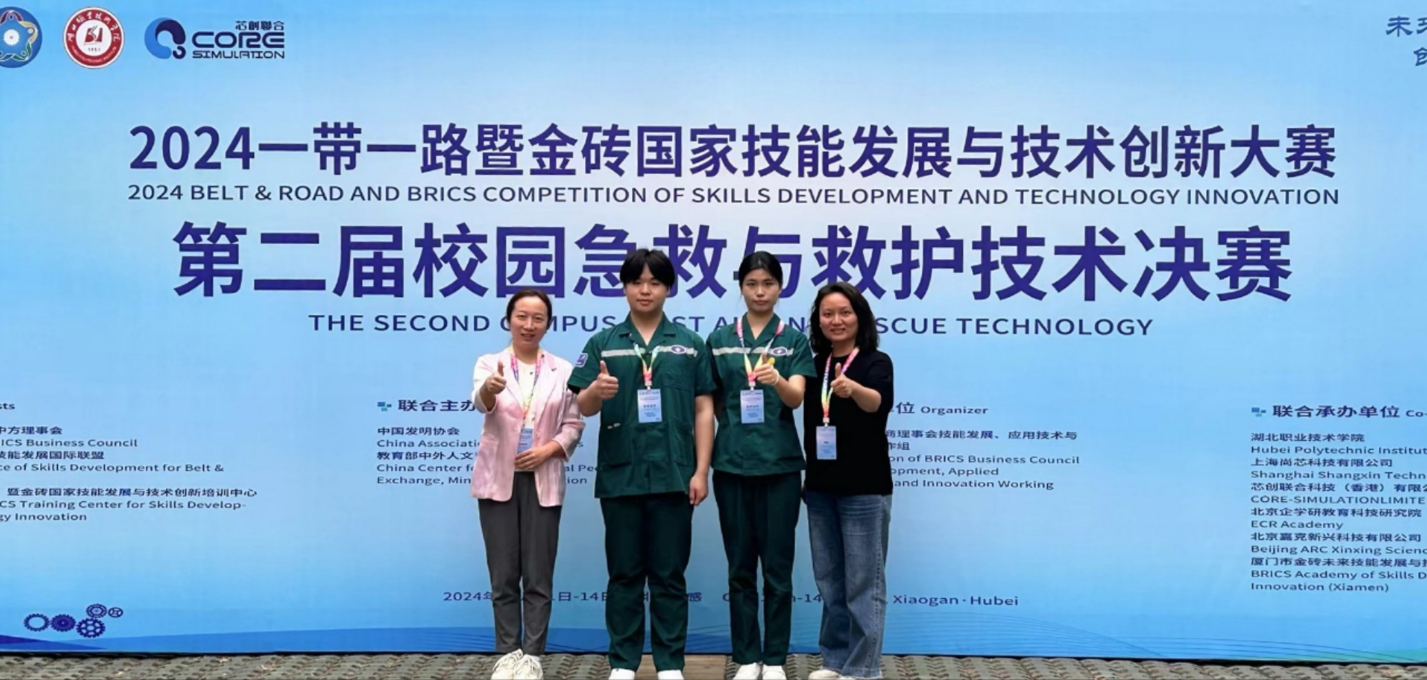 本次大赛由金砖国家工商理事会中方理事会、一带一路暨金砖国家技能发展国际联盟、教育部中外人文交流中心等多家单位联合主办,湖北职业技术学院承办。学院高度重视学生技术技能的培养,持续深化"岗课赛证"融通,首次参加此项赛事,实现了护理专业在该赛项上的零突破,将有助于进一步提高我院护理专业人才的培养质量。