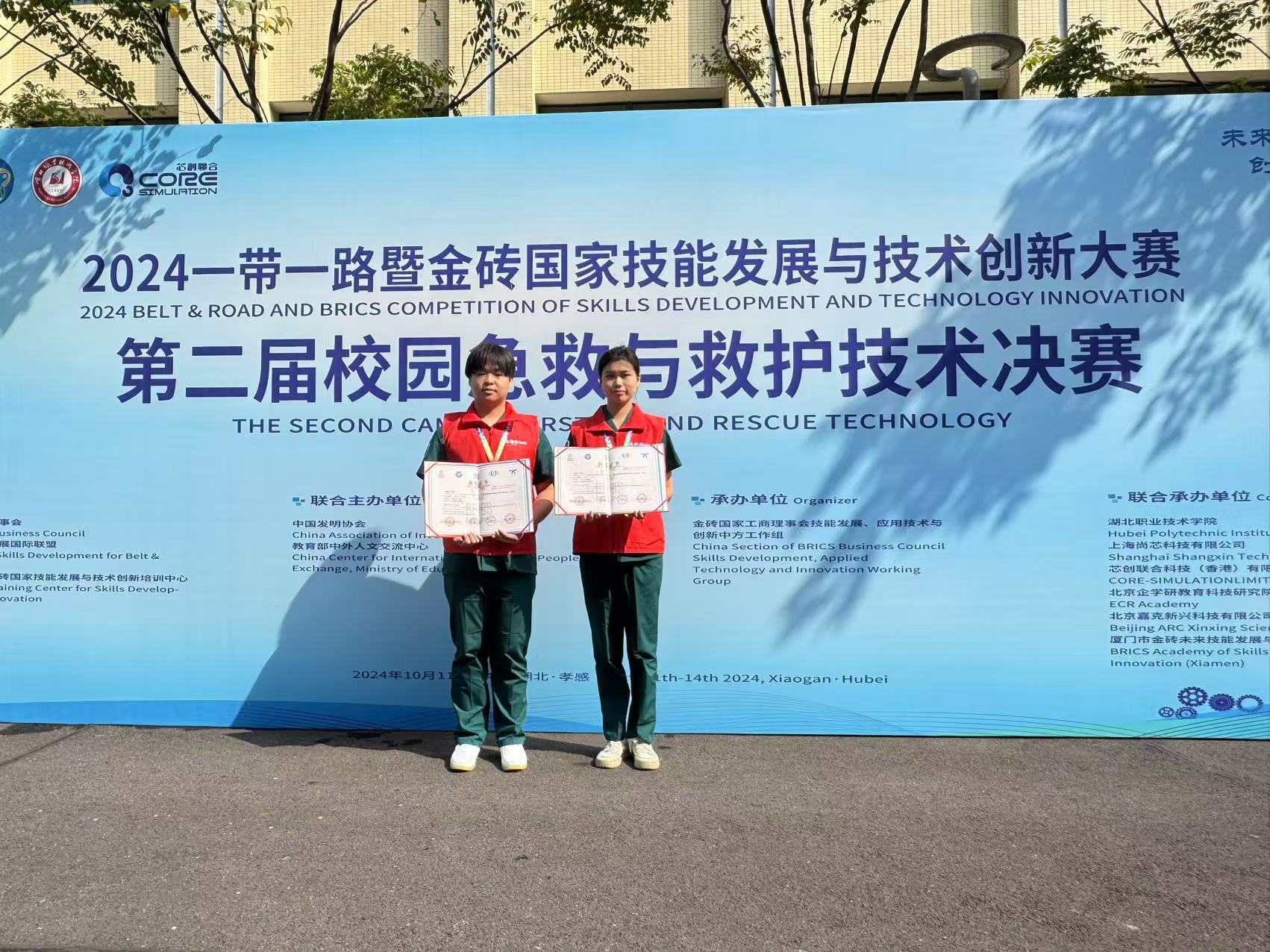 10月11日至14日,2024“一带一路”暨金砖国家技能发展与技术创新大赛——第二届校园急救与救护技术决赛在湖北孝感举行。本次决赛共有来自全国各地114支队伍参赛,其中医卫组67组,非医卫组44组,国际组3组。大赛内容主要包括综合职业能力测评、心跳骤停救护,创伤救护,急救知识宣讲。