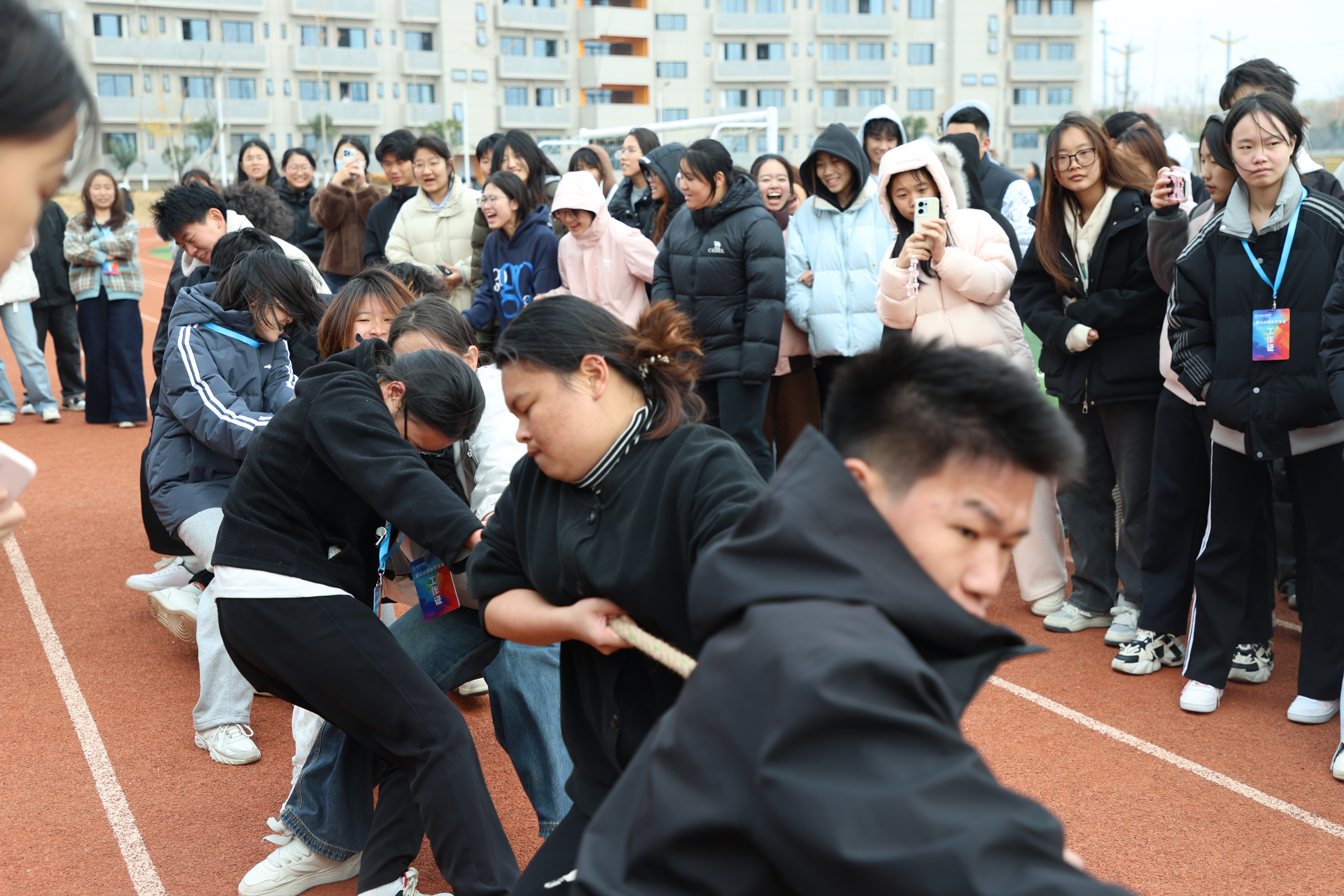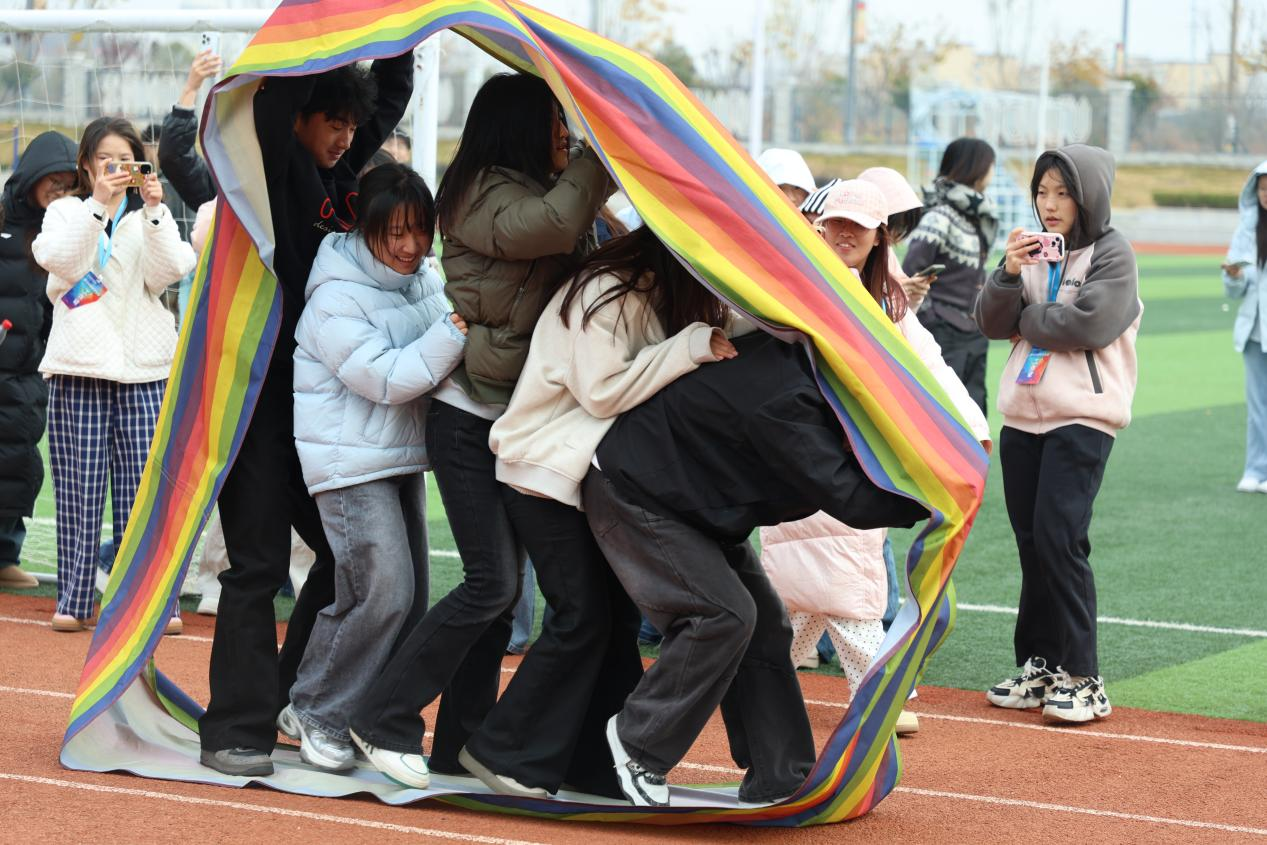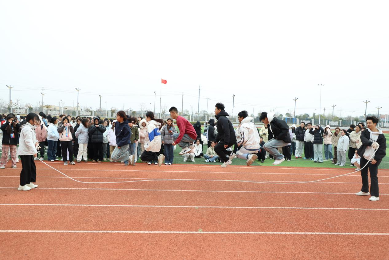 闭幕式上,备受期待的决赛环节率先登场,跳大绳、拔河、无敌风火轮三场巅峰对决依次展开。跳大绳比赛中,队员们身姿矫健、配合默契,跳绳在空中划出连贯弧线,整齐的跳跃节奏里满是团队协作的力量;拔河赛场,参赛选手们双脚蹬地、紧握长绳,通红的脸颊与紧绷的臂膀彰显着不服输的韧劲,场边师生的加油呐喊声震彻全场;无敌风火轮项目里,各队成员步调一致、稳步向前,在“车轮”滚动的节奏中,将“心往一处想、劲往一处使”的团队精神展现得淋漓尽致。每一场比赛都扣人心弦,每一个瞬间都充满热血,运动健儿们用汗水诠释着对运动的热爱,用拼搏书写着青春的精彩。