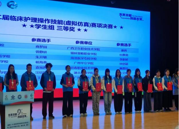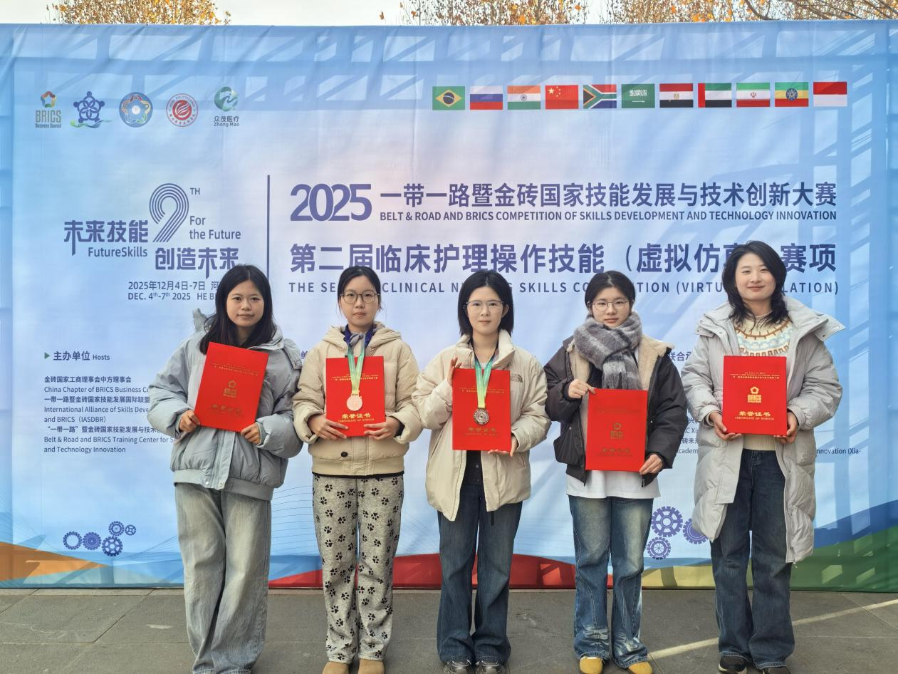 2025年12月5号-7号,一带一路金砖国家技能发展与创新技术大赛--第二届临床护理操作技能(虚拟仿真)赛项决赛于河南鹤壁满落下帷幕。本次大赛吸引了来自全国各中高职以及本科院校的249支学生参赛队伍。经过初赛和决赛两轮激烈角逐,我校孙烁雅同学夺得二等奖、刘鑫汝同学夺得三等奖、常天亮、汤佳慧、胡智慧同学夺得优秀奖。
