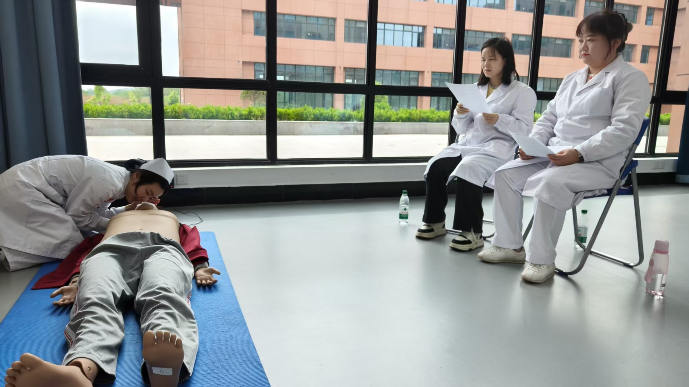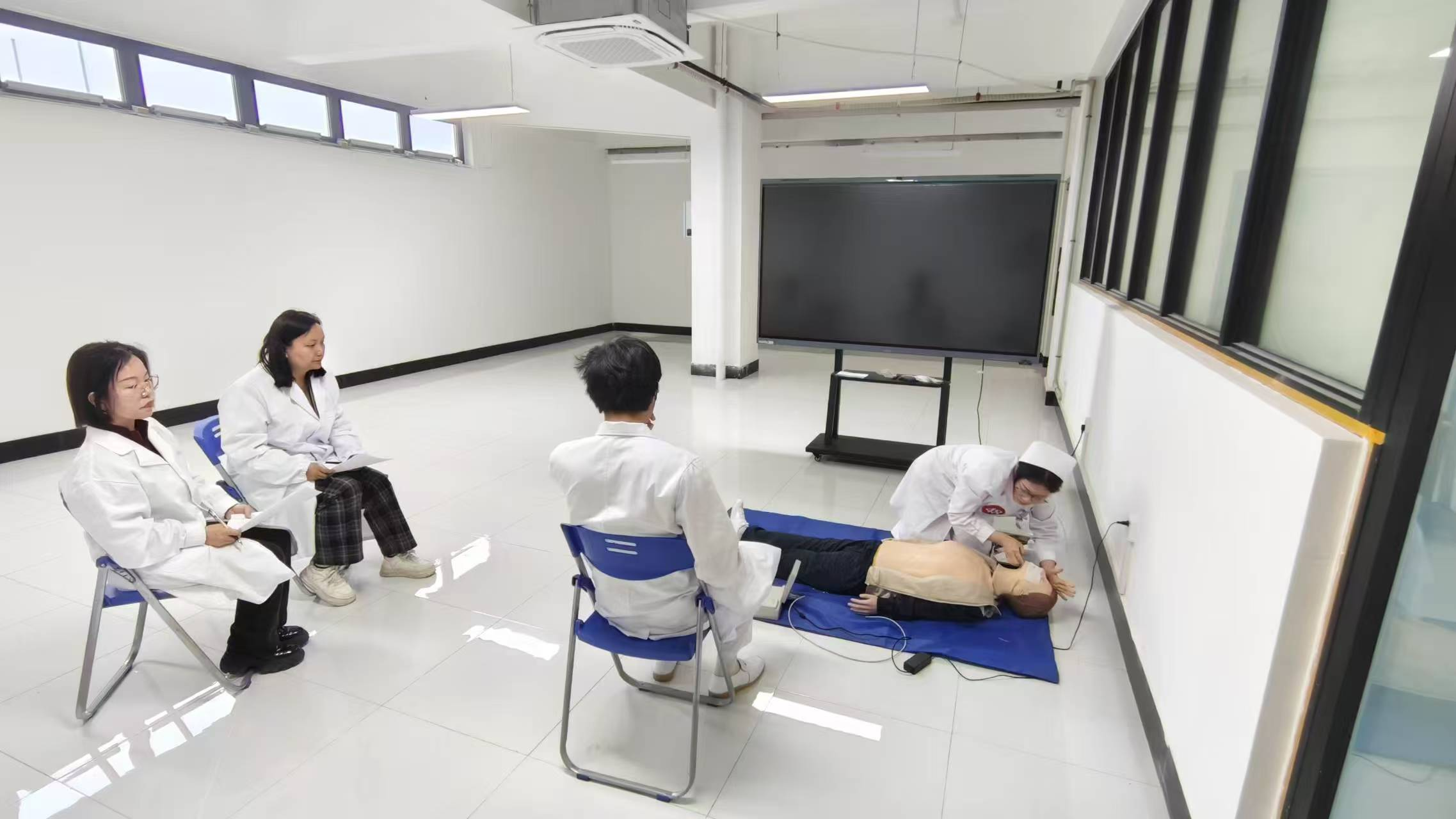 按压定位精准、频率规范,气道开放到位、人工呼吸标准……每一个动作都流畅规范,每一步操作都细致严谨。现场由临床专家、专职教师组成裁判团队,公平公正打分,计时员、操作助理等全程配合,确保比赛严谨有序进行。