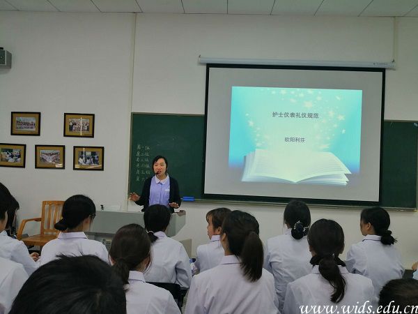 首先,欧阳老师对护士服饰、举止、语言等护理礼仪进行讲解,使学生能够深刻理解护士的着装要求、姿态、表情等对于日常工作的重要。之后,欧阳老师还给我们带来了临床护理的一项重要的基础操作技术——铺备用床,这也是护理学院的每个学生必须掌握的护理基本技能,老师将同学们分成了六个小组,分组进行,调动了学生的学习兴趣和积极性,小组成员一起讨论,既加深了印象,又达到了沟通交流的目的,增强了团队协作能力。老师给学生演示之后很多学生跃跃欲试。