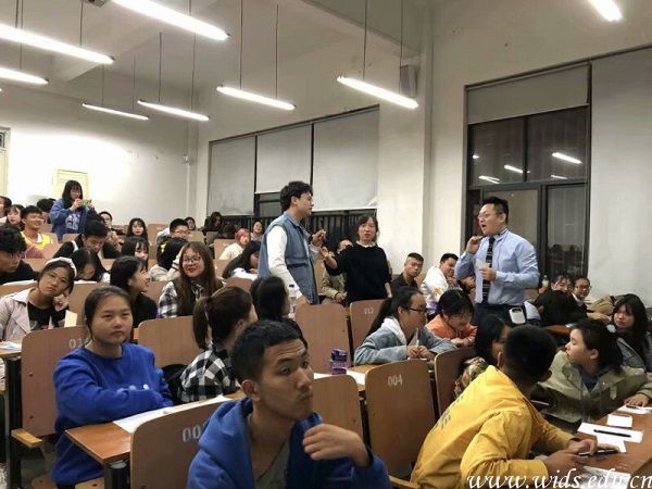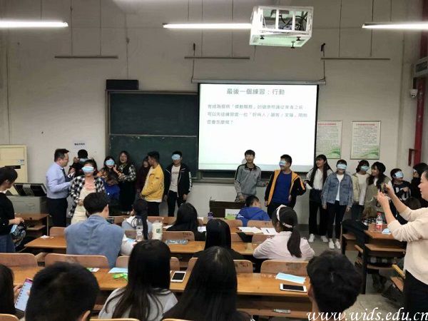 讲座期间许志玮老师多用电影片段、医生采访片段并辅助以医院真实案例来跟学生讲解何谓感动服务,如何才能做到感动服务。除此之外,许老师设置医患场景来让学生扮演医患关系中的角色,充分调动学生的积极性。学生提前置身医患关系的处理中为就业以后应对类似情况做好充分的心理准备。让学生们印象深刻的还有许志玮老师让学生两人一组,一人口罩遮眼一人搀扶沿阶梯教室走道行走一圈后采访学生们的感受,让学生学会“信任”,学会照护过程中细节安抚的力量。讲座的最后许志玮老师向学生们介绍了目前台湾的照护背景,同时激励同学们把握护理行业大方向选择适合自己的方向把感动照护融入到以后的职业生涯中去。