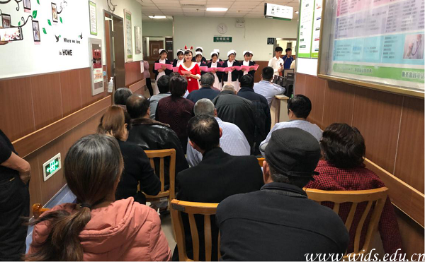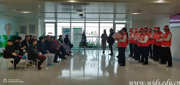 同学们身着护士服(爱心志愿者服)一个楼层一个楼层为病人及病人家属倾情演唱了《欢乐颂》、《铃儿响叮当》、《平安夜》三首歌曲。同学们温柔甜美的歌声像一股清泉滋润着患者的心田,给整个病区带来了欢声笑语。同学们除了表演精彩节目外,还与病友们进行了亲切交流互动并邀请患者合影留念。亚心总医院17楼病区的一位老奶奶主动参加了合唱,还向同学们传授了如何唱好着三首歌的经验。病友们对同学们的表演给予了热烈的掌声和高度的赞扬。