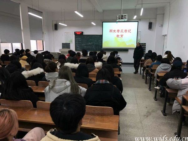 考风考纪教育大会辅导员张凯莉老师主持,吴斌副院长主讲。吴斌副院长首先阐述了期末考试的重要性和诚信考试的必要性,随后从考试的时间要求、用具要求、纪律要求、违规行为的认定、违规行为的处理和国家关于考试违规的有关规定等6个方面做了详细的讲解,要求同学们诚信考试,在考试中绝不能发生违纪、作弊现象,不要一失足成千古恨。