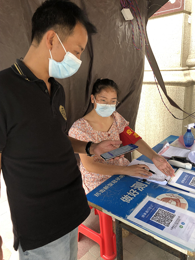 身为一名党员响应社区号召,下沉到社区做好疫情防护工作。8.19日护理学院辅导员张凯莉老师积极报名参与社区疫情防控志愿者,被分配到附近小区参与疫情防控。主要检查进入小区行人的健康码,登记外地返汉人员的14天行程,提醒意识薄弱的老人规范佩戴口罩。