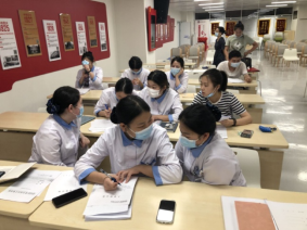 指导老师张敏丽检查学生的实习手册,总结了实习手册填写中存在的问题。会上张老师着重强调了护士资格证考试对护理学生的重要性,要求学生重视当前实习,重视专业知识的巩固,争取在明年的五月份拿下护士资格证,为以后的工作提前做好规划。
