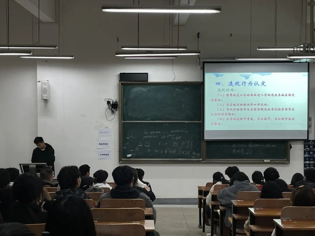 大会上,辅导员详细讲解了学生守则中对于考试的要求,强调考试一定要带上必需品:身份证、学生证、黑色中性笔,希望同学们意识到考试诚信的重要性,严格遵守考试纪律,并再次强调考场内严格遵守监考老师的安排,不得在考试过程中旁窥、交头接耳、互打暗号或手势。