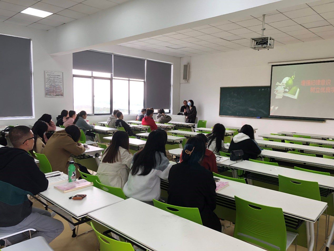 10月12日、17日、21日护理学院20级四个班分别召开以“增强纪律意识 树立优良学风”为主题的学风建设班会。班主任吴娟老师和张凯莉老师、辅导员张凯莉老师、副院长吴斌老师参加额各个班的班会。