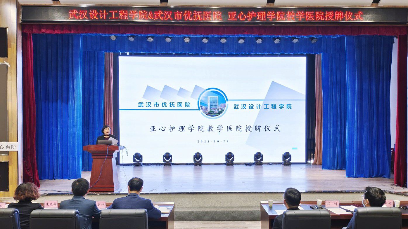武汉市优抚医院陈刚书记致辞表示,感谢学校对医院的信任,医院将不负厚望,以医助教、以教促医,全力以赴支持教学工作;医院高度重视本次院校合作,这种合作对强化业务能力、提高科教研水平、规范人才培养将起到积极的推动作用;医院和学院要各自发挥特长,共同探索,深化医教协同,提高护理教育的质量和医院医疗卫生的水平,为湖北省培养出更多优秀医护人才,共同推进健康中国建设。