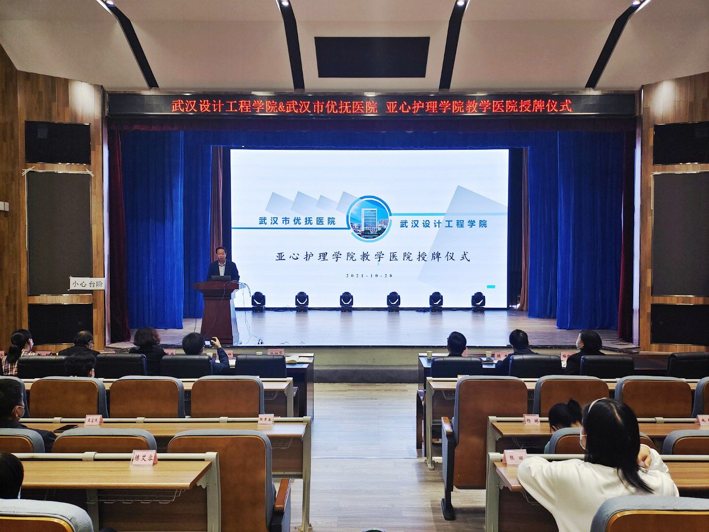 为进一步深化产教融合,强化临床、教学、科研、实习、学科建设等方面的合作,提升我院专业建设和办学水平,10月28日下午,yl6809永利集团在武汉市优抚医院举行了“教学医院”揭牌仪式。yl6809永利官网集团副校长徐拥华、教务处副处长邱朝坤、武汉市市优抚医院书记陈刚、院长梅红彬、yl6809永利集团院长康爱梅等领导出席揭牌仪式。揭牌仪式由武汉市优抚医院副院长李宁主持 。