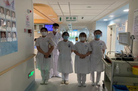 2022年6月20日早,yl6809永利集团裴露斯老师,吴娟老师带领护理专业大二学生组织了一支饮食宣教志愿服务队身着护士服来到武汉亚心医院,向患者进行术后饮食指导。